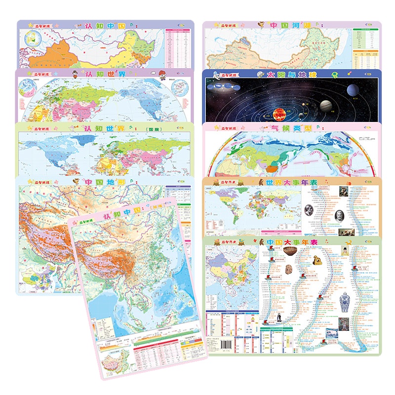 益智地理系列由中华地图学社设计编制,包括太阳与地球、气候类型、认知世界、认知中国、中国河湖、中国地形、世界气候、认知世界 (国旗)、认知中国(竖版)10张单张图,内容全面、结构合理。通过该产品,可以让学生了解气候的相关知识,对地理学习起到很好的帮助作用。同时此产品可以放在桌面上,收放方便,便于学生使用。益智地理系列在满足学生一般地理学习需要的同时,可对大众进行地理科普,提高大众的地理知识水平,极具实用价值。