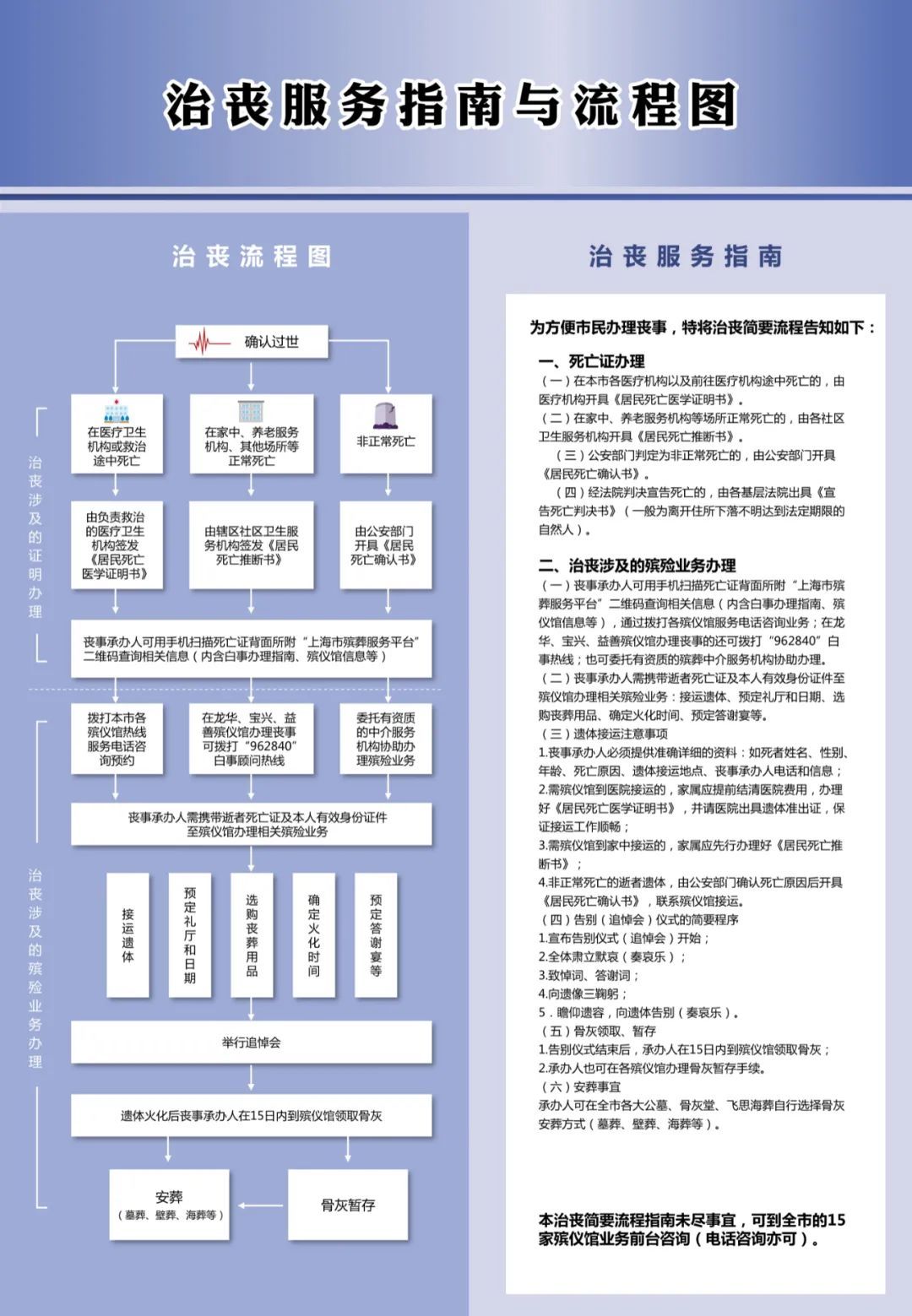 为帮助市民了解丧事办理的详细流程,保证丧属利益,让“白事”明明白白办,上海市民政局发布了丧事服务指南和提示,详见↓