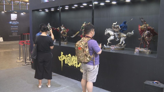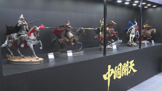 来到潮流玩具及模型展展区,入目所及同样有大量的国风主题展品。在开天工作室展台,精致的三国五虎将雕像作品和仙剑奇侠传系列雕像作品吸引不少观众驻足。现场,一位手办爱好者向记者表示,在她看来,中国的手办和雕像的质量已经完全不输日美等国,在细节和做工上都已相当考究。“我觉得来CJ还是应该来看中国的手办,国风系列我觉得是一个非常非常好的IP,然后做得也非常生动。”