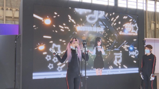 穿上特制的动作捕捉服,站在相机前,便可实时进行虚拟直播。在凌云光展台,这款运用人工智能技术的动作捕捉系统让“虚拟偶像”成为可能,动作同步的灵敏程度已经达到了手指级别。