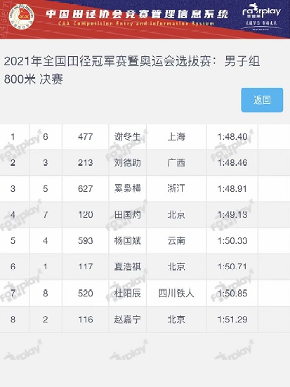 2020年,由松江区泗泾小学培养并输送的运动员——优秀的田径运动员谢冬生入选中国国家田径队,其项目为800米、1500米。今年20岁的他获得了全国田径冠军赛800米冠军。
