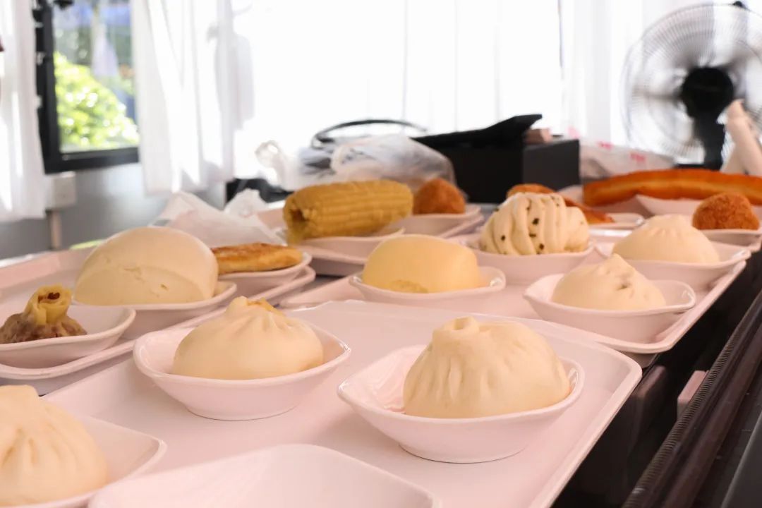 助餐车虽然空间不大,但橱柜里的早餐却很丰盛,提供肉包、菜包、梅干菜包、花卷、烧麦、粽子、豆浆、茶叶蛋等近30种餐品,售价大多在2元左右。