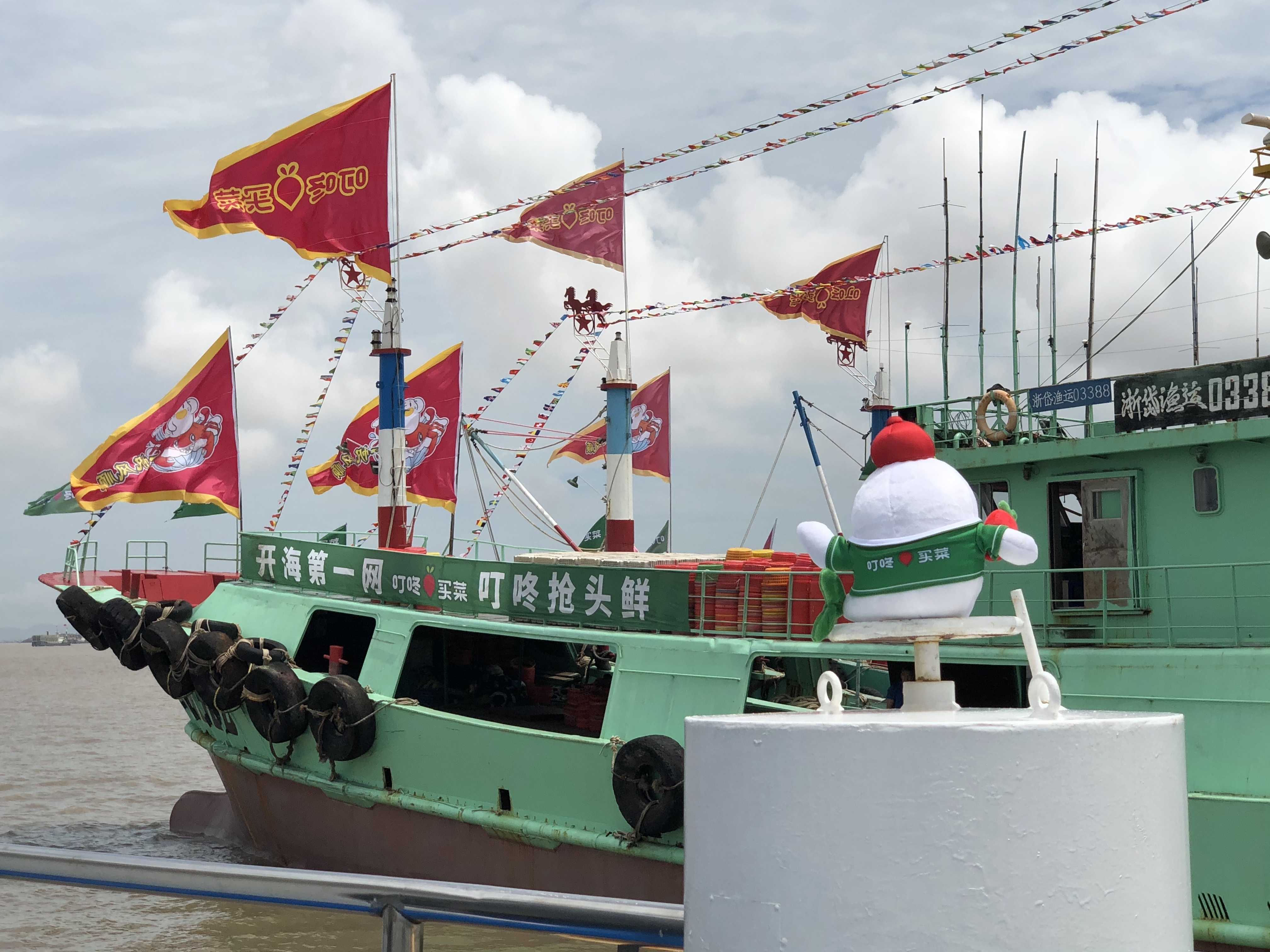 记者从叮咚买菜了解到,为了保证梭子蟹的新鲜和活跃度,从码头一筐筐鲜活肥美的梭子蟹正从渔船上被卸下后,紧接着被送进装有叮咚专属的海水恒温冷藏车。随后,它们将以最快的速度送向全国各地尝鲜者的餐桌。