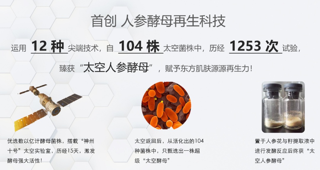 其实,早在2013年6月,中国化妆品企业伽蓝集团首次与中国航天合作,伽蓝通过搭载“神舟十号”开展“太空实验室”科研项目,并与中科院合作,从搭载的酵母菌落中培育出“太空酵母”,并运用这种酵母开发出 “美素太空酵母精华”及“美素人参再生精华液”。