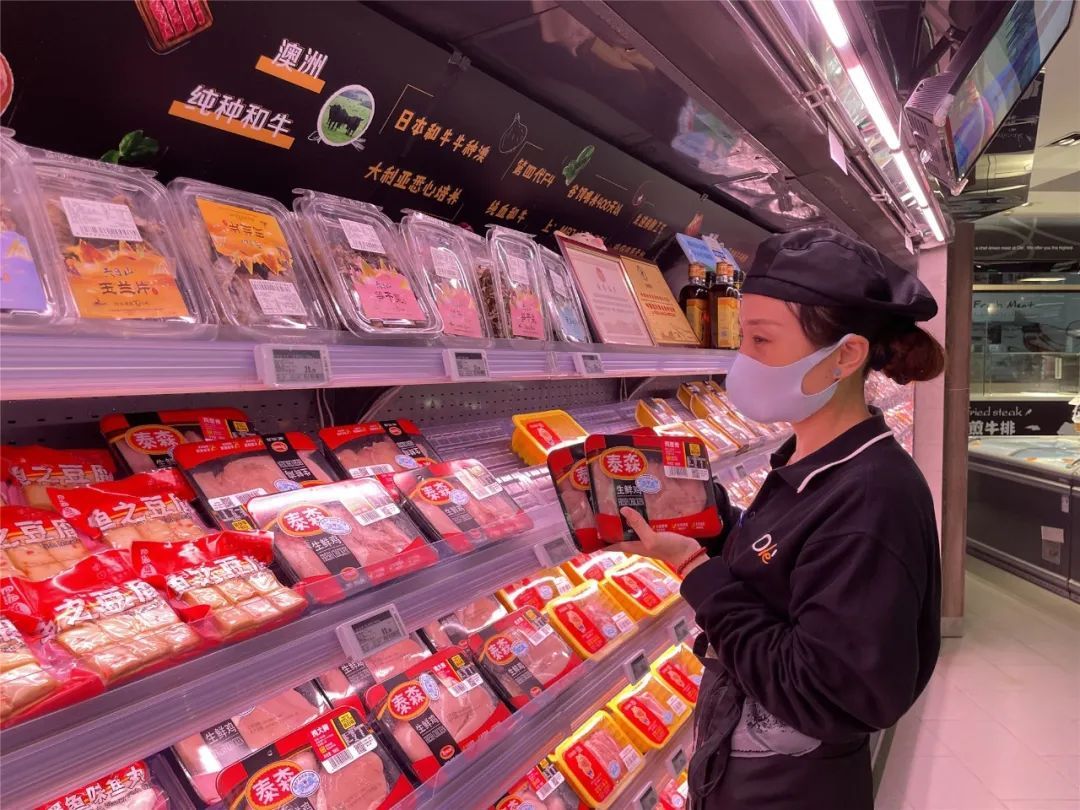 商场B1层的Ole’精品超市内,员工须自测体温、佩戴口罩上岗。目前,超市公共空间及共用物品会定期消杀,生鲜蔬菜、肉类等商品供应充足,收银方面设置有自助买单系统。市民关注的超市冷链食品均通过正规渠道采购,可查看商品原始相关信息公示墙,同时商场也加强了相关员工的管理工作。