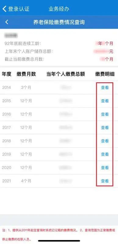 打开“上海人社”APP,完成用户登录后依次点击“业务经办”→“社会保险”→“城保缴费查询”→“养老保险缴费情况查询”。随后,在缴费明细栏目点击“查看”,您当前以及历年的个人缴费基数全都一目了然!