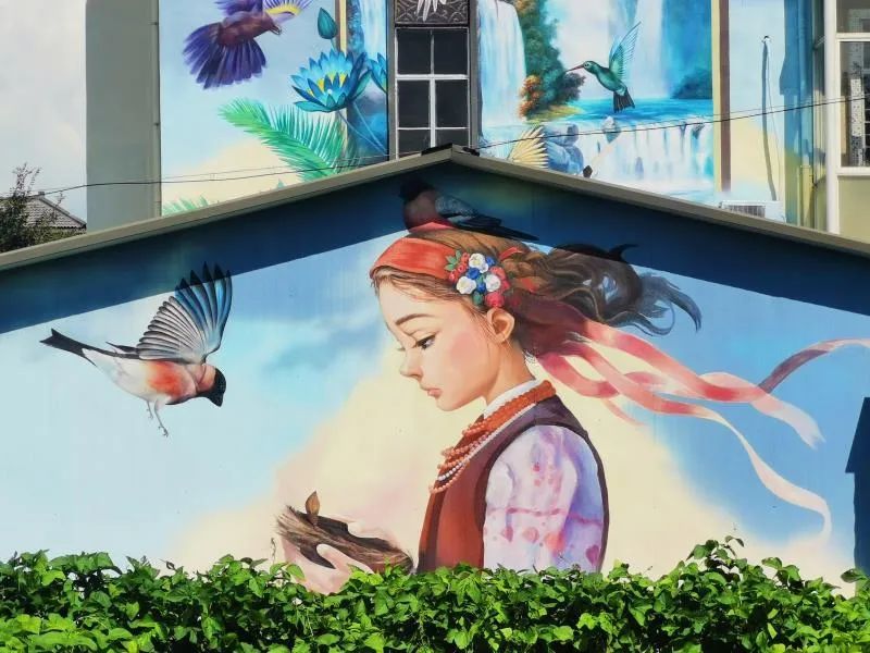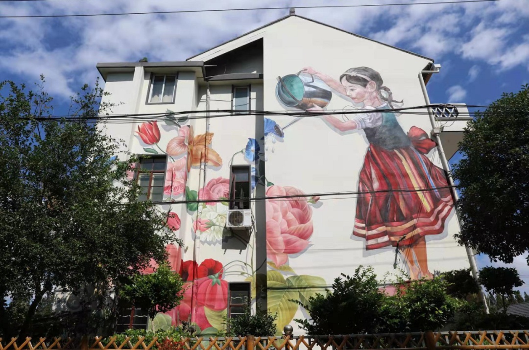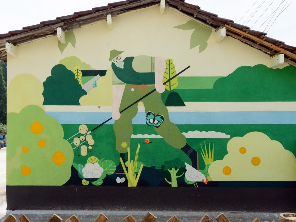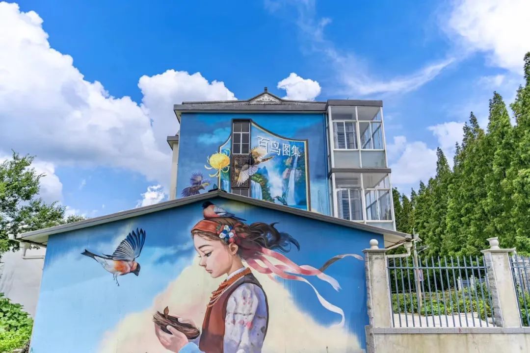 这些墙绘作品色彩丰富、内容鲜活,或是涂画着鸟语花香,或者描绘着浪漫童话,或是记录着乡村趣事,每幅画都以清新、自然的场景,展现多姿多彩的田园景象,记录着绿华人温馨的农家生活,成为了美丽乡村一道亮丽的风景线。