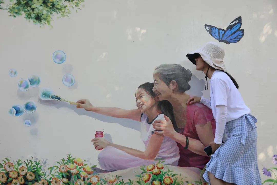 据了解,这些墙绘在设计时,将观赏性、趣味性、互动性考虑其中。部分作品具有立体意境,人在其中,能和墙绘互动起来,翻一页书、跳一支舞……让自己也进入这美好的画面里。