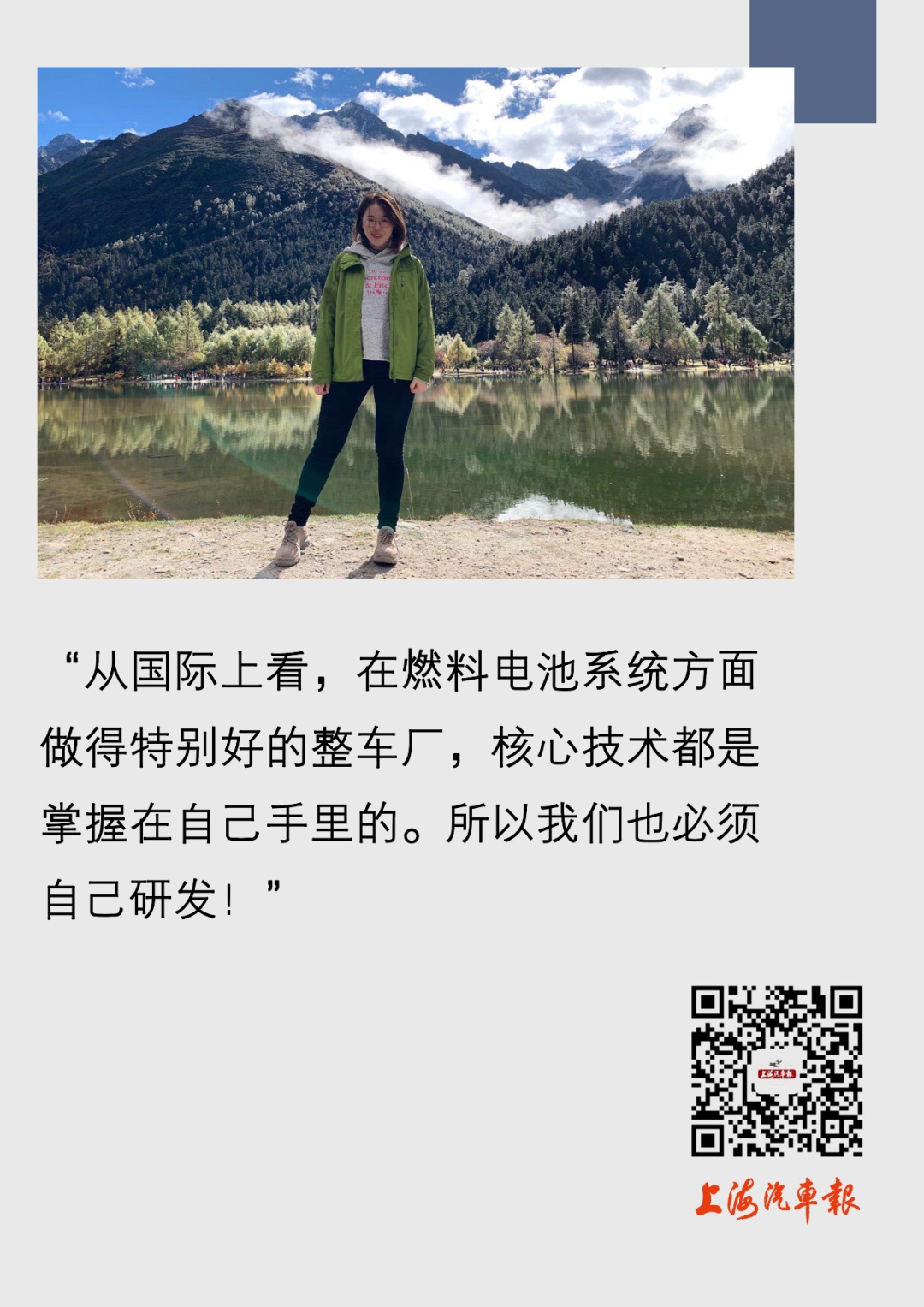 实际上,任欢在博士毕业之后,就有很多企业向她抛出了橄榄枝,而她最终选择了和汽车有关的燃料电池行业是源于自己的兴趣加成。“上高中的时候就特别喜欢看F1赛车比赛,在读研期间也来上海安亭看过现场比赛。接触了‘魔都’之后,这里各色的人群和多样的生活方式吸引了我,加上专业对口,所以我毕业后就选择了在上海的这份工作。”
