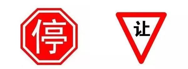 左图:停车让行,通常放置于交叉路口,在停车线前停车观望后方可通行。
