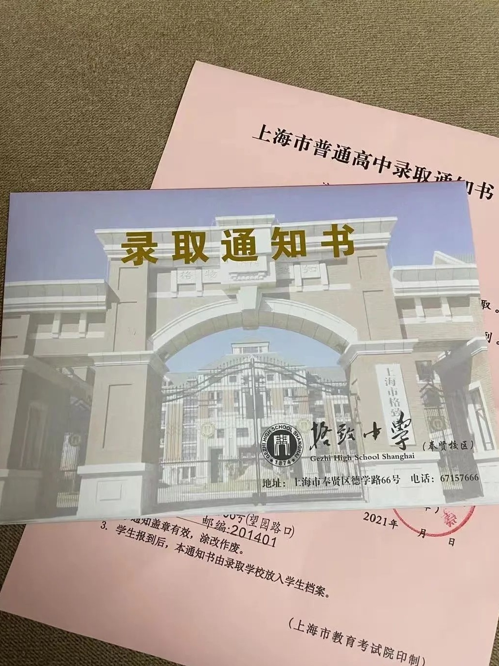 2021中招录取已经顺利结束,沪上高中学校的录取通知书将会依据录取新生信息库中的通讯地址快递到家,请注意查收。需要提醒的是,若长时间未收到录取通知书的新生,请尽快电话联系各高中学校招办。