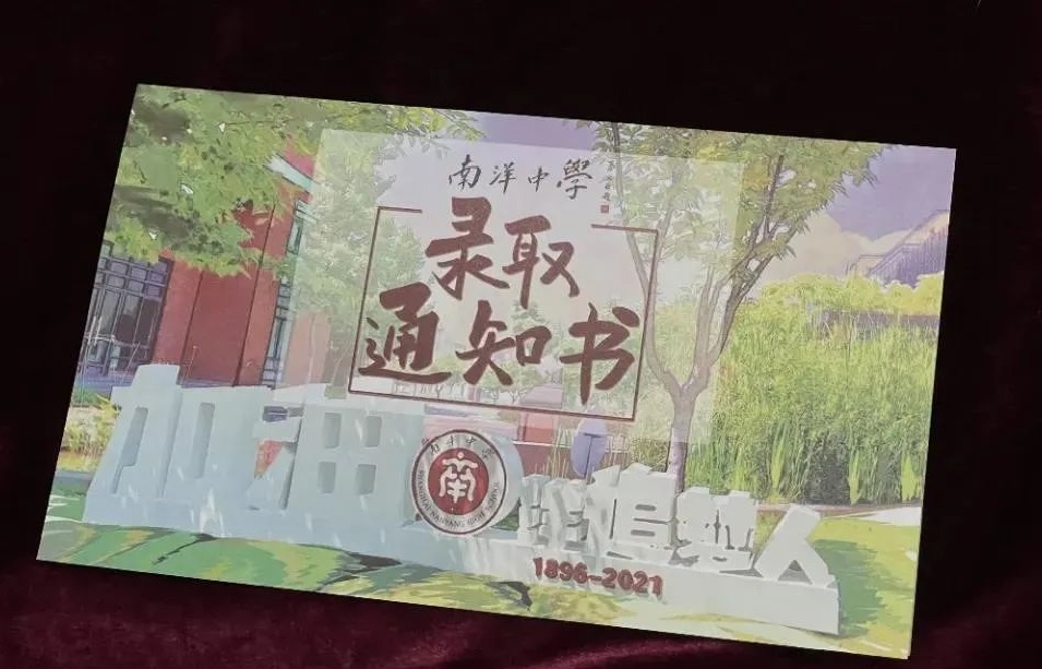 录取通知书上印有附中建筑、四季风景。学校希望孩子们在进高中的时候就能够播下交大的种子。