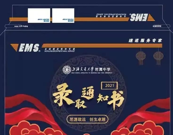 今年,上海交通大学附属中学特别与EMS合作,定制了交大附中录取通知书特别版本。