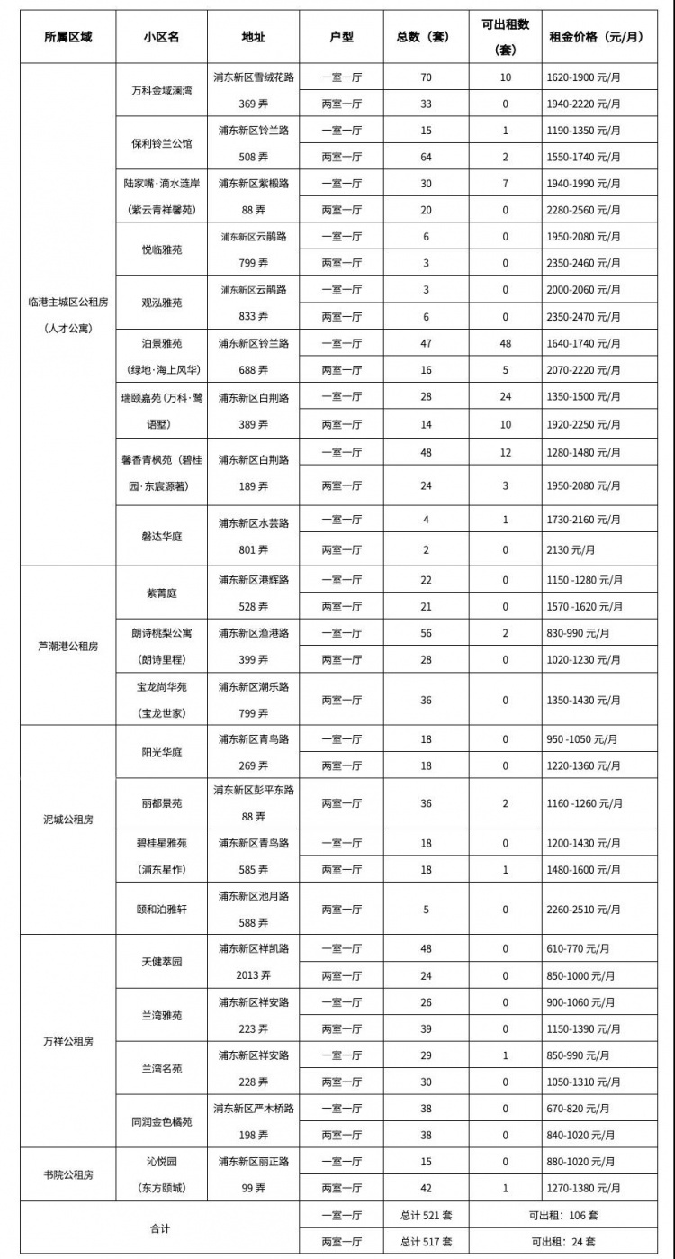 临港新片区管委会说,临港的公租房房源信息已发布,房型有一室一厅和两室一厅两种。其中,可出租的一室一厅共106套,两室一厅24套,房源为保利铃兰公馆、泊景雅苑、瑞颐嘉苑等,详见↓责任编辑 倪莉琪来源 上海发布