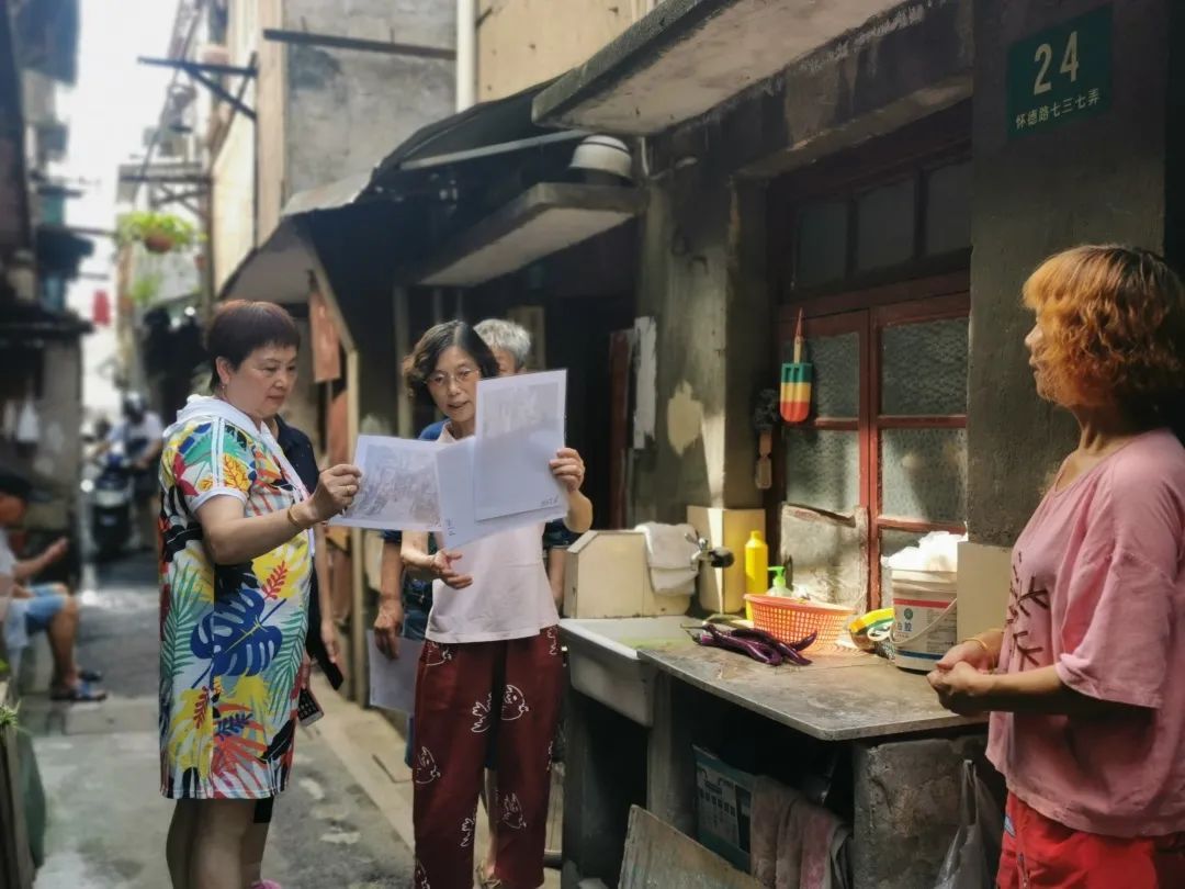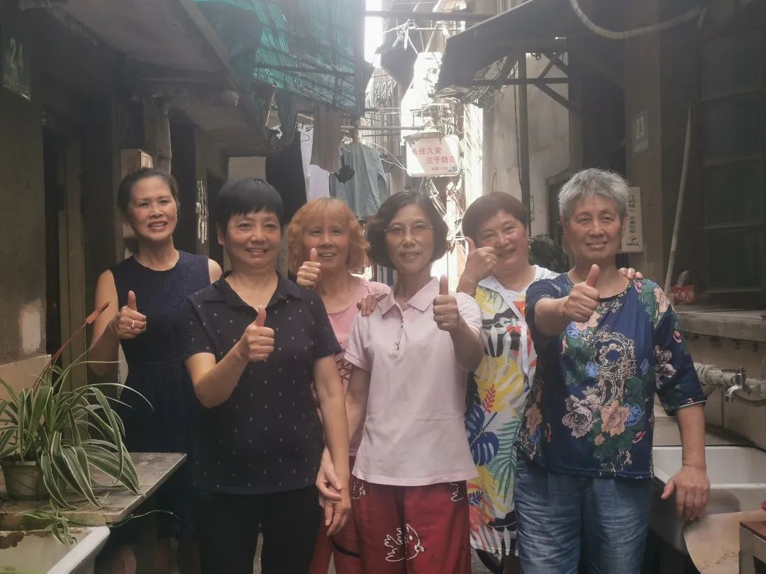 居民徐秀英、徐瑛、朱惠明、任建琳、缪香菊五人,是弄堂里相识三十多年的老朋友,年龄相仿,情同姐妹。她们趁着还没搬家,便抓紧时间,将最后在弄堂里的生活时光拍下来留作纪念,发给邻居们。8月10日上午,弄堂里不少居民收到了很多照片。