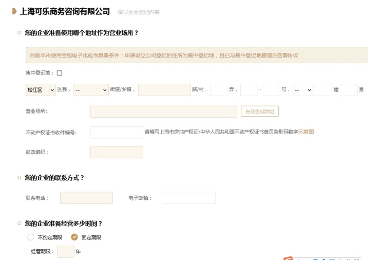 *住所地址系统直接导入,同营业执照地址无需修改