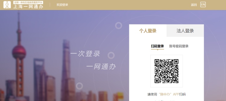 5、持证本人选择个人登录使用“随申办”客户端扫码登入