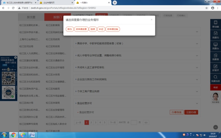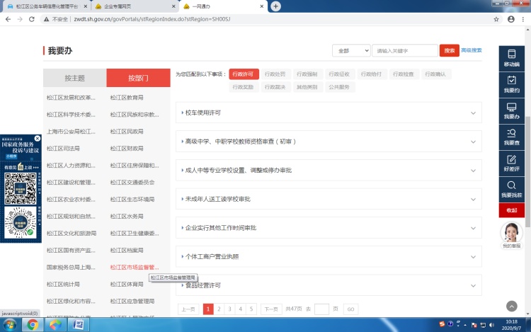 4、我要办—按部门—松江区市场监督管理局