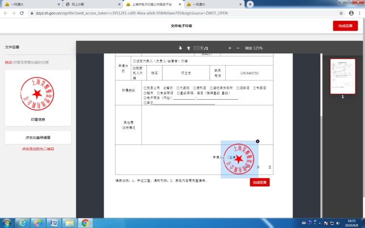 8.1.5拖动电子公章至合适位置,点击“完成签署”
