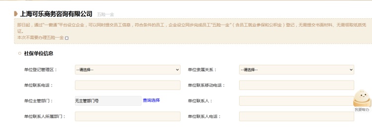 10、按需选择是否办理员工“五险一金”,如无需办理勾选“本次不需要办理五险一金”,如需要办理按照系统提示完整填报申报社保单位信息、公积金单位信息并添加人员信息