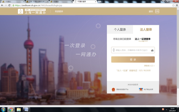 2.1使用“法人一证通”登录
