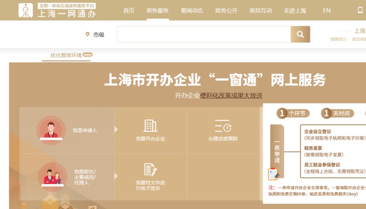 1、打开“一网通办”网站http://zwdt.sh.gov.cn/,在搜索栏里填写“开办企业”