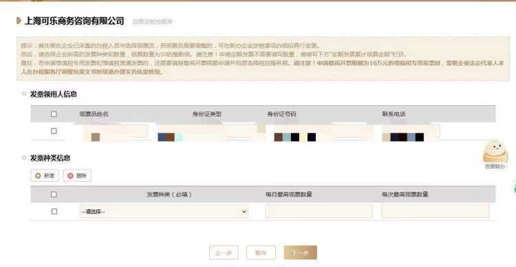 15、填报发票领用人信息,新增发票种类信息