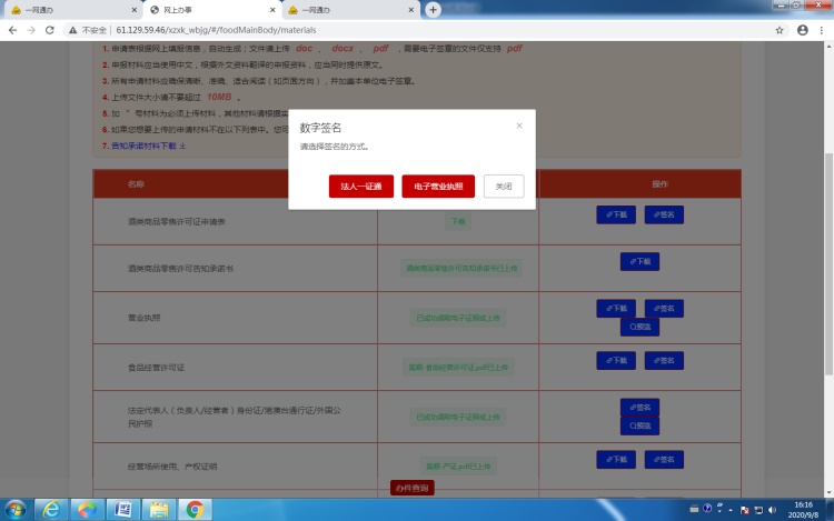 8.1如预审通过,返回一网通办做数字签名