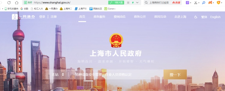 1、打开“一网通办”网站http://www.shanghai.gov.cn/