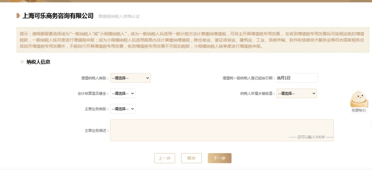 14、完整填写纳税人信息