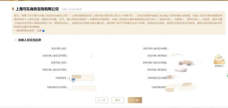 12、按照系统提示,填报办税人员信息