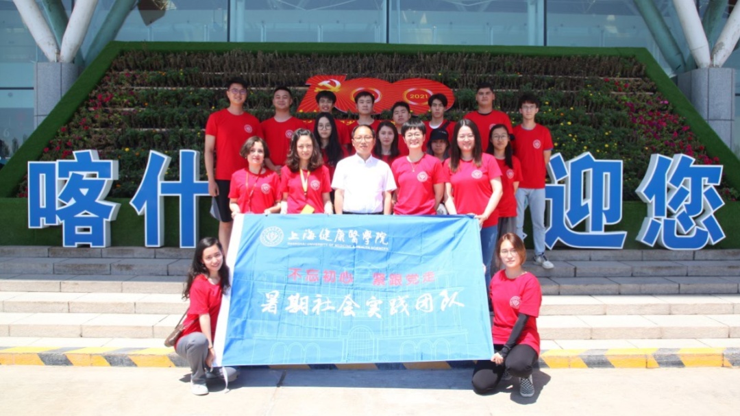 身穿红色队服,这20位师生有一个共同的名字:上海健康医学院“口述援疆,白衣传承”医疗服务党史宣讲团。这个2021年上海市大中专学生暑期社会实践全国重点团队,在7月23日至30日走进新疆喀什,以医学生的独特视角,访谈记录援疆医务人员的心路历程;以一技之长服务喀什居民,普及急救医学知识;用维吾尔语和普通话双语讲好沪新党史故事,传承红色基因,促进民族团结。