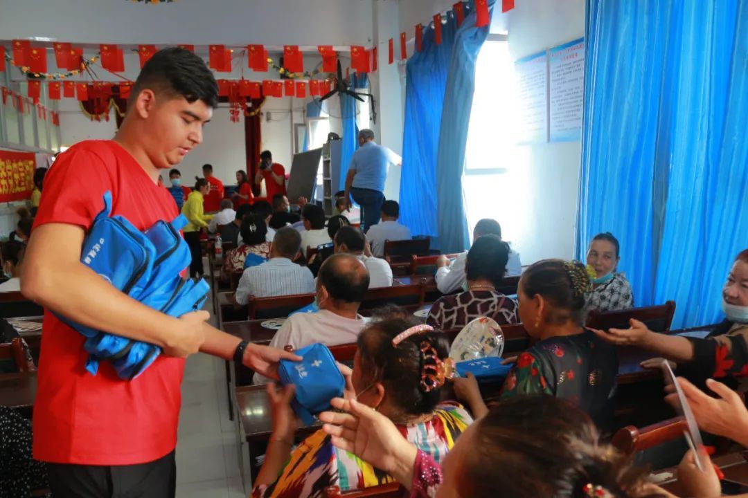 和团队一起在喀什度过繁忙的8天,凯赛尔忙着实践工作,没有回家住一晚。唯一的一次回家,他请在喀什二院当医生的妈妈烧了一桌美味,和团队师生一起分享。在他家里,宣讲团领队之一、上海健康医学院团委副书记马志波有了“惊喜的发现”:凯赛尔还保留着两年前团队给当地市民发放的医疗急救包。打开急救包,三角巾、纱布、棉签、退烧贴、人工呼吸面罩,一应俱全。凯赛尔说,这个急救包对他来说意义非凡,所以很珍贵。此次他所在的社会实践团队又带来200个急救包,发放给喀什有需要的市民。