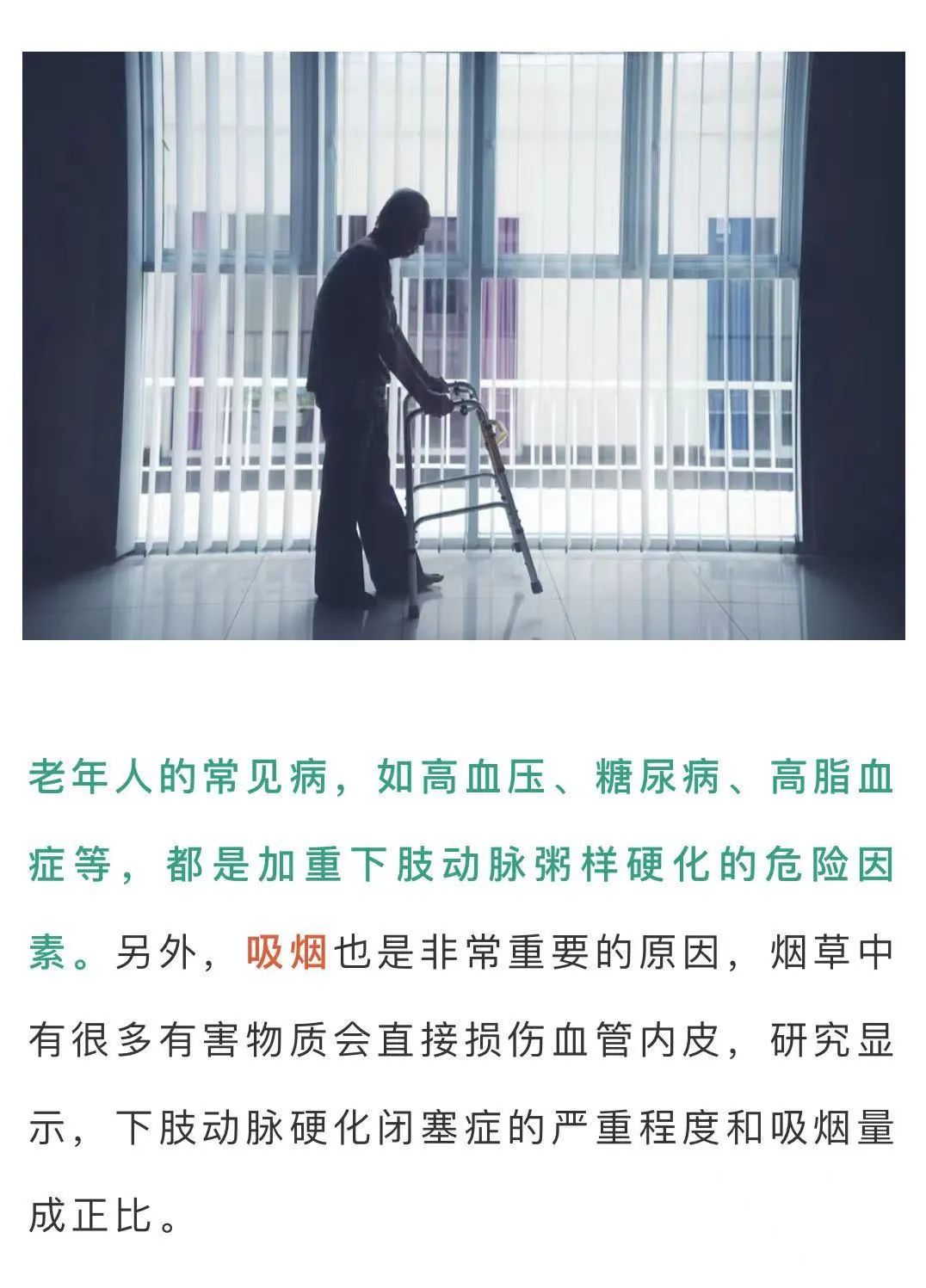 下肢动脉硬化闭塞症常常是全身性动脉硬化在下肢动脉的表现,发病率随着年龄增长而上升,70岁以上人群的发病率为15%~20%。
