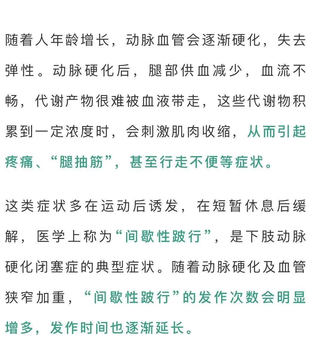 但是,如果老年人有上述危险因素,又经常出现腿抽筋,并且在适当补钙之后还是有腿疼或者腿抽筋的症状,就应该像李阿姨一样及时到医院就诊。