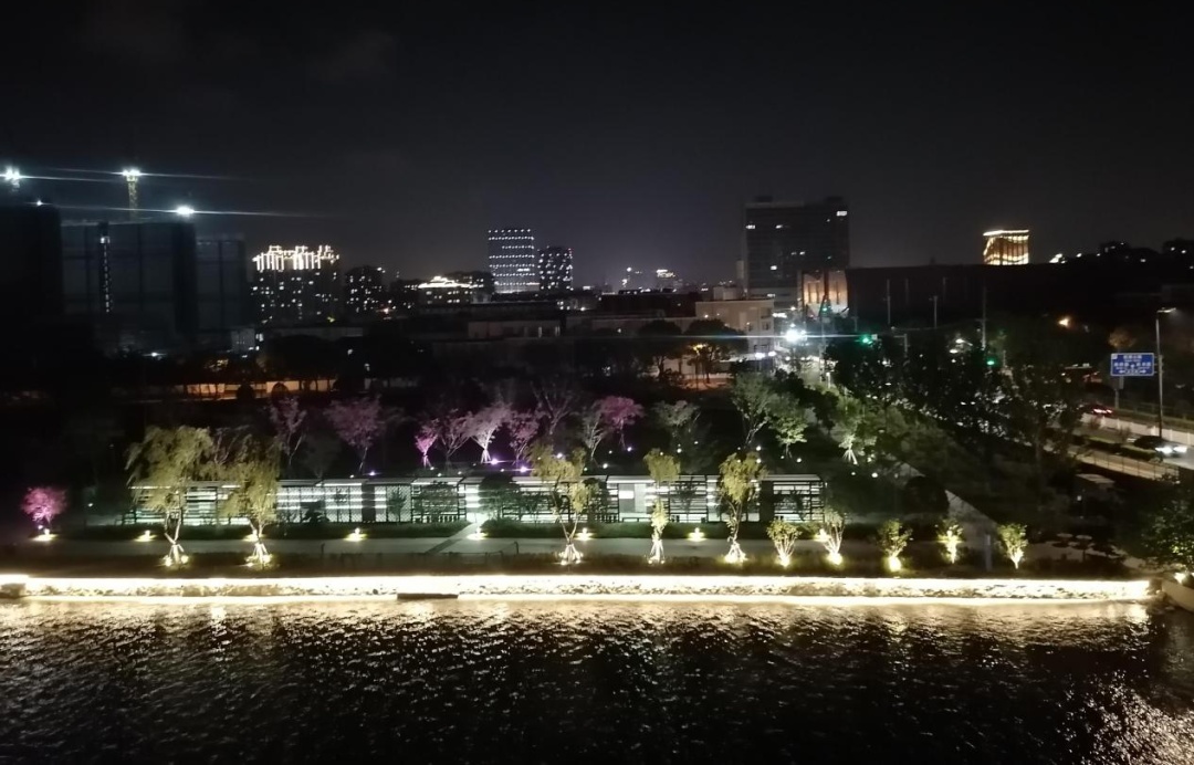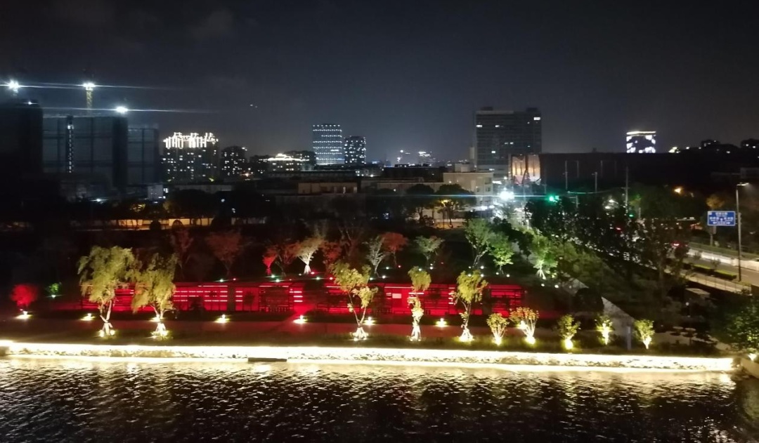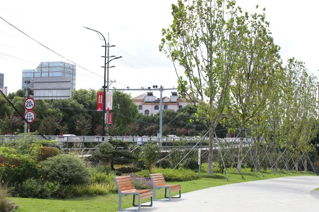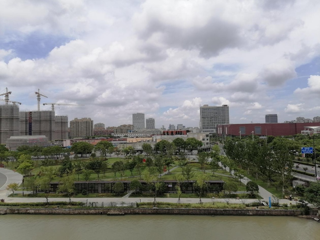 照片中的公园属于奉贤“十字水街”项目,位于浦南运河北侧环城东路西侧,是一处运河沿岸的滨水公园。