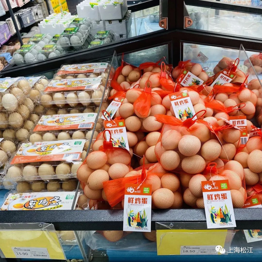 在思贤路附近的一家超市中,销量最高的散装鲜鸡蛋价格为6.28元一斤;15枚装的盒装、网兜装苏北草鸡蛋每盒(袋)价格在15至25元不等。