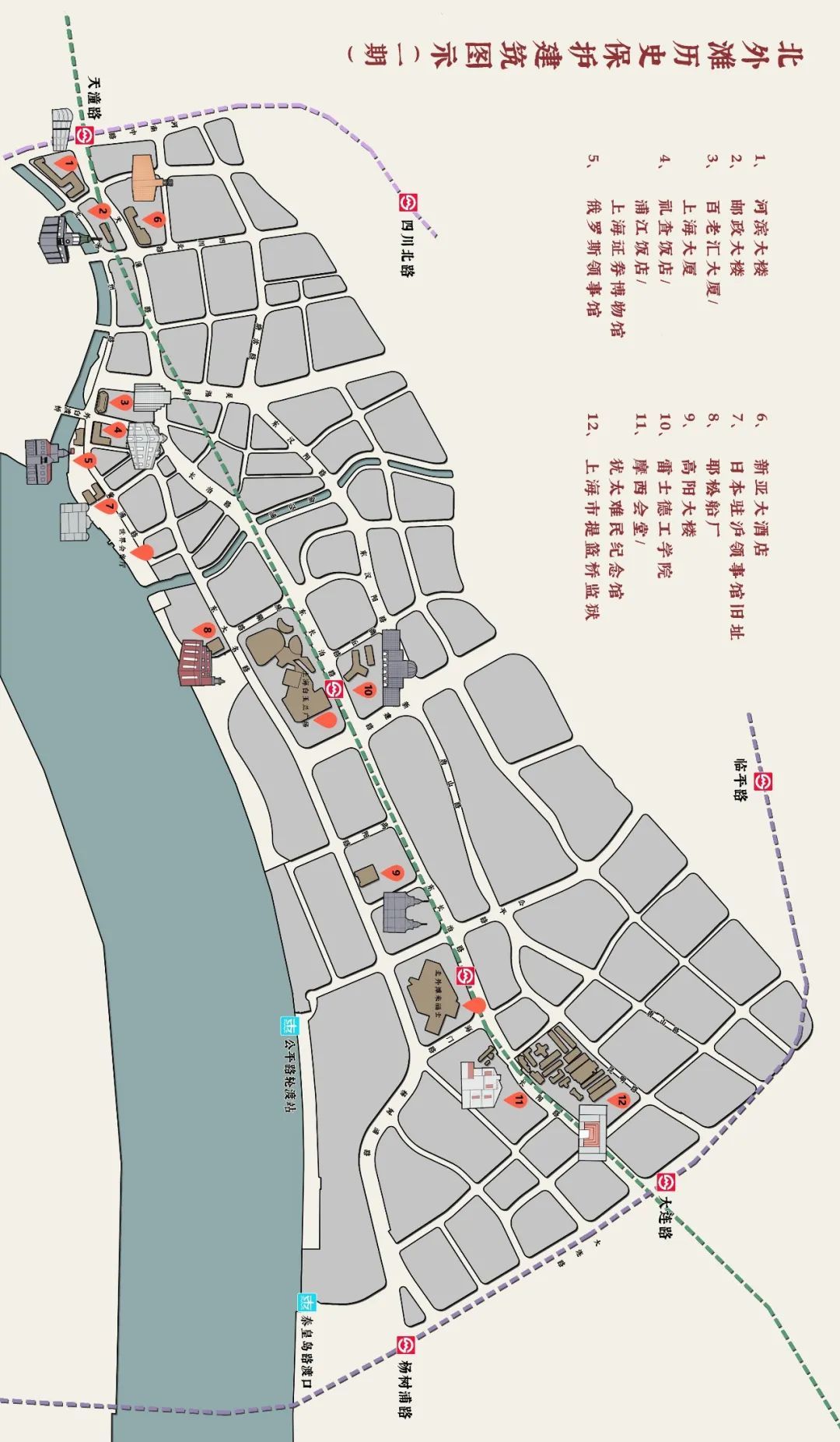 北外滩历史保护建筑简易地图