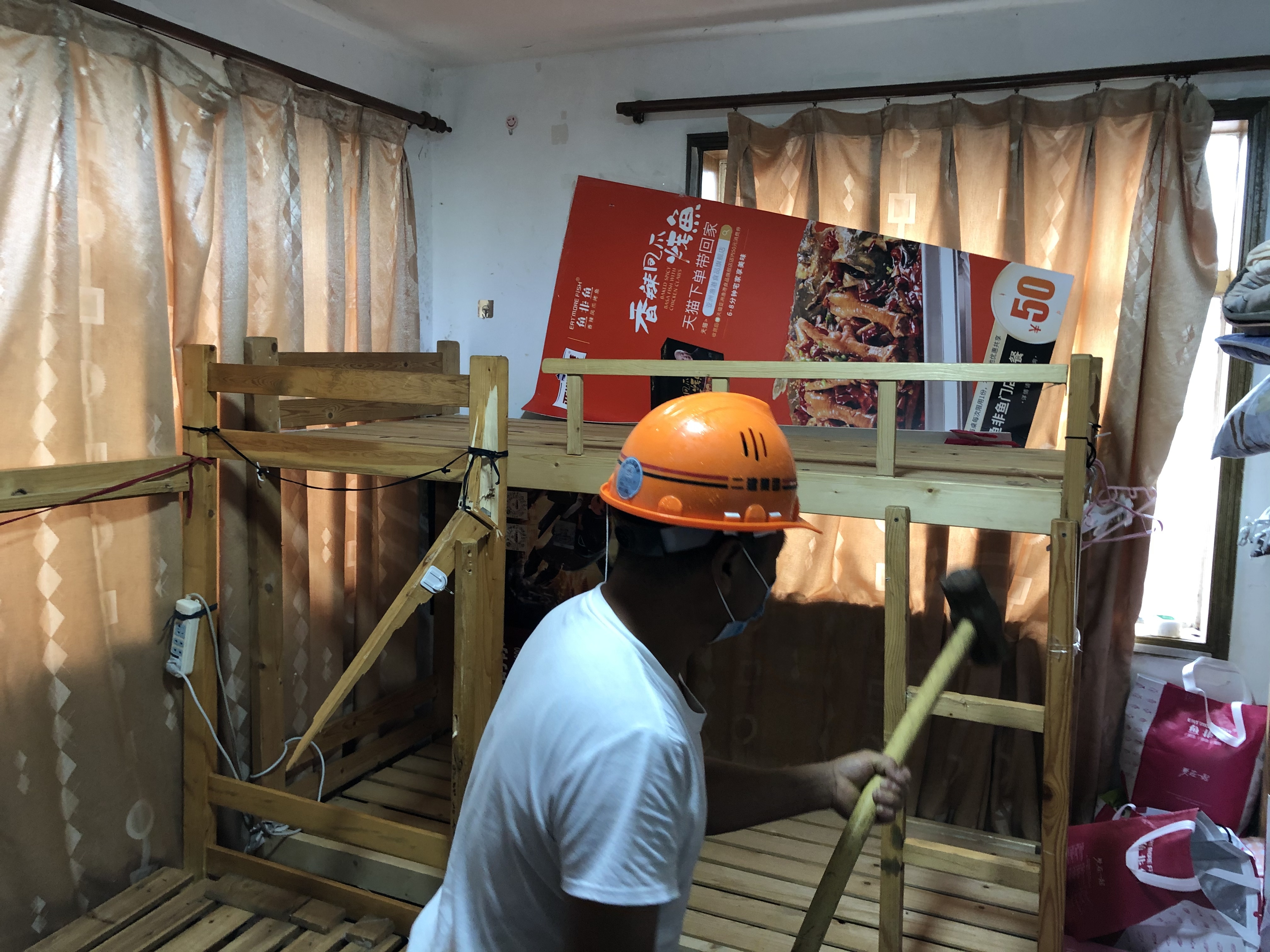 满屋床铺、空间逼仄、烟头满地、异味熏人……一间73平方米的两室一厅屋子,竟然改造成了12个人的“员工宿舍”,卫生情况堪忧、安全隐患重重。8月11日,曹家渡街道群租整治工作领导小组办公室牵头派出所、城管、城运中心等职能部门对四和小区开展群租整治,拆除违规床铺41张、劝离租客63名,群租隐患动态清零4户。