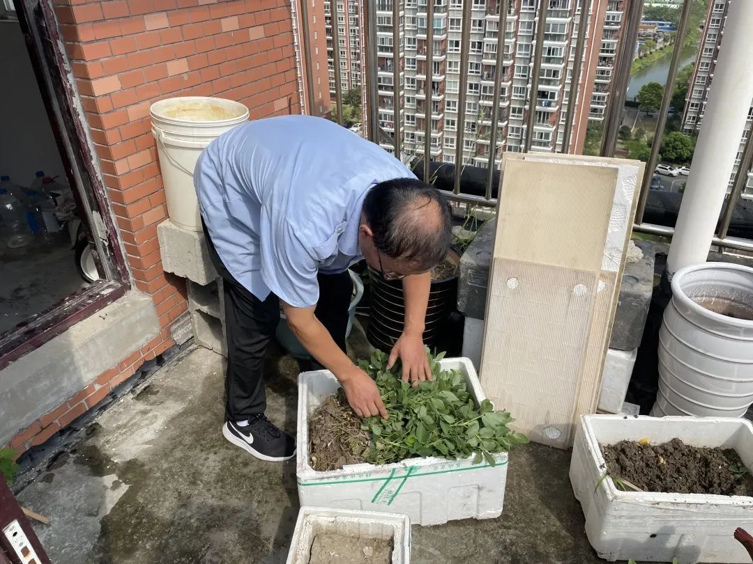 楼顶种菜,随意堆放白色泡沫箱、木条、塑料桶等杂物,不仅影响小区卫生环境,加重楼板渗水,而且极易引发邻里矛盾,让居民苦恼不已。近日,顾村镇菊祥苑居民区党支部践行“我为群众办实事”实践活动,联合物业共同整治小区楼顶种菜现象,为居民解决“屋顶烦恼”。