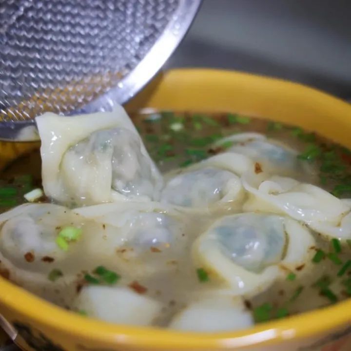 馄饨都是面点师每天现包现煮的,精选上好的瘦肉为馅,高精面粉做皮。每个馄饨都是特别饱满水灵,一个要咬上好几口才能吃完。馄饨里流出的汤汁自然淌在勺子上,吮一下,回味无穷。每日这里要卖掉五六百碗馄饨,早晨六七点是小店用餐的高峰,不大的店铺内总是座无虚席。