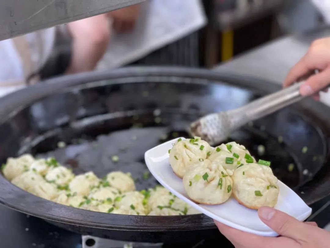 店内早点主要以生煎、锅贴、汤包为主。点上一份刚出炉的生煎,雪白松软的面皮,饱满紧实的肉馅,香浓滚烫的汤汁,焦香酥脆的底子,真是绝妙的搭配。