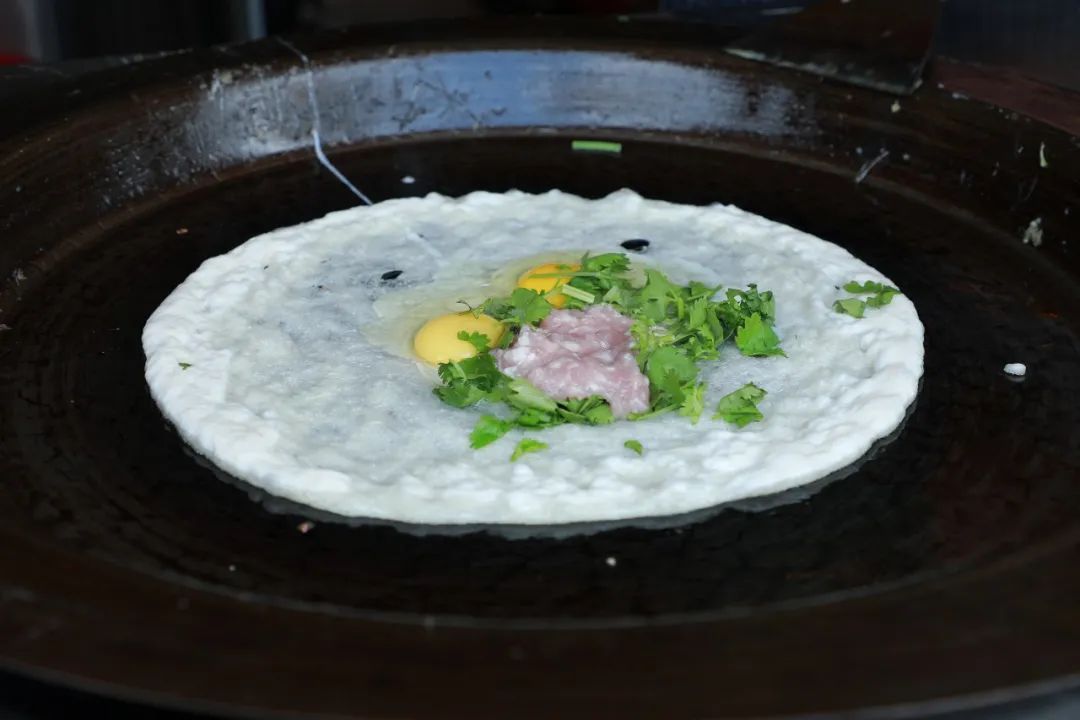 “老板,我要一个两个蛋、加肉糜、加香肠、再加生菜的鸡蛋饼......”说嘉定人的早餐丰富而豪横,一点不夸张,一个鸡蛋饼就能完全诠释这一特点。