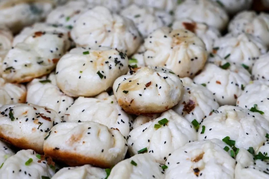 水煎包皮薄馅儿大,每个都有2两重,一面煎至金黄就能出锅。其中猪肉馅的水煎包最受欢迎,咬上一口汁水横流,如果喜欢吃素,推荐韭菜鸡蛋粉条馅儿的,若是还不满足,山东杂粮煎饼也可以来上一套。