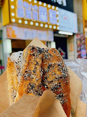 热乎乎的油条和麻糍悄然相遇,油条酥脆、糍粑软糯、芝麻香甜,三者完美地融为一体,可盐可甜,妙不可言。