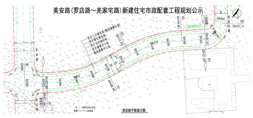 《美安路(罗店路~羌家宅路)新建住宅市政配套工程》西起罗店路,东至羌家宅路,工程范围内道路长度为205.973米。建设内容如下: