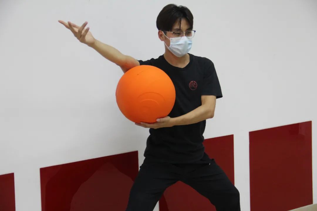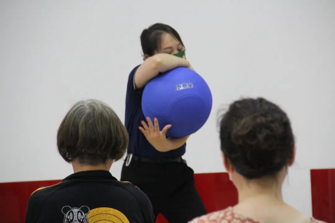 活动中,老师先给大家介绍了无极球起源和基本动作,在大家对无极球有了一定了解后,才开始带领大家做热身运动,疏通筋骨。