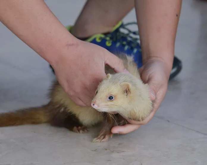 这只走失的安格鲁貂身长约25厘米,毛色白中带黄,有着一双黑色的眼睛,外表十分可爱讨喜,通过民警的喂养,变得十分活泼。