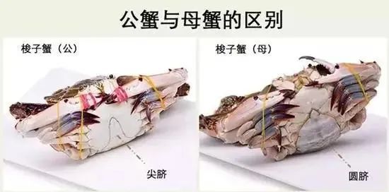 除了蟹腹的纹路,肚脐也是非常重要的判断依据。肚脐圆圆的是母蟹,肚脐尖尖的则是公蟹。