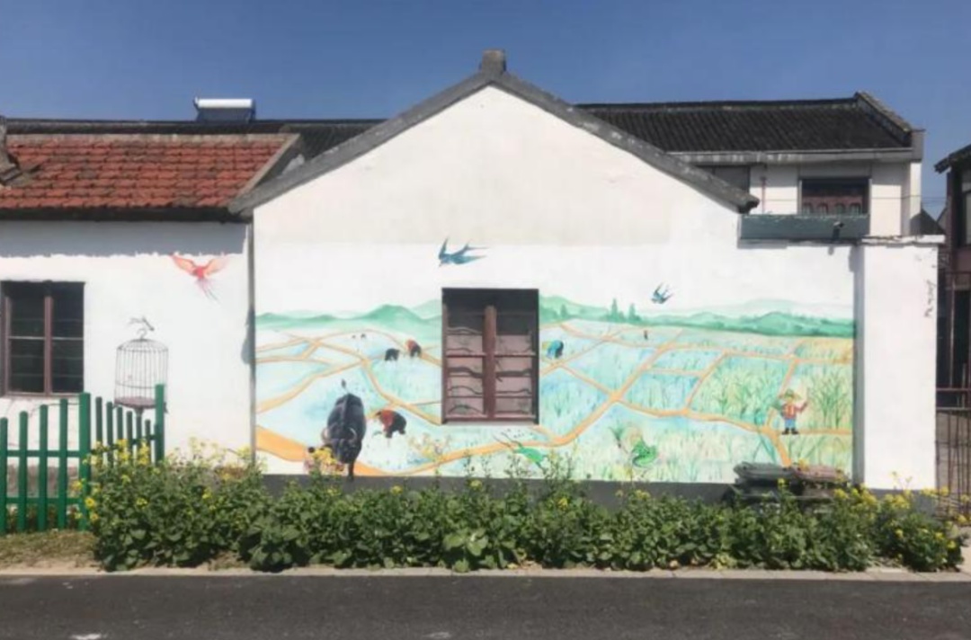主题艺术墙体彩绘为崇明绿华镇绿港村的老房子画上了“彩妆”。墙绘作品色彩丰富、内容鲜活,或是涂画着鸟语花香,或者描绘着浪漫童话,或是记录着乡村趣事,展现多姿多彩的田园景象。